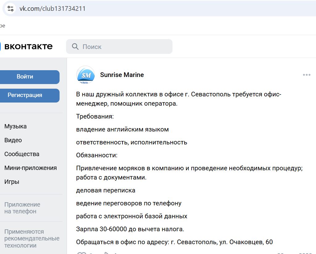 At the same time, neither during the creation of this structure, nor in the subsequent one, it was particularly clear that its main “target audience” is Crimean sailors; there are reports on social networks about the activities, at least in Sevastopol and Kerch, of “Marlow Navigation” recruiters “under the umbrella” of “Sunrise Marine”, which coordinated the corresponding “shadow offices” in these cities.