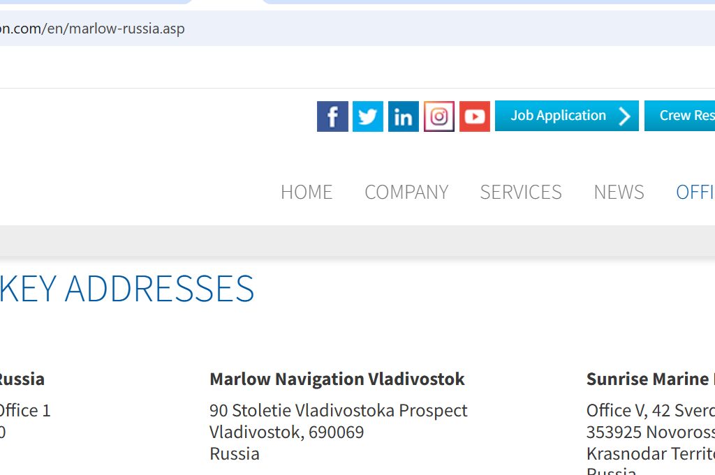 “Sunrise Marine” had the “working name” as “Marlow Navigation Taurica” in the first years of its existence, and it was under this brand that its first Novorossiysk office was opened, and this company is mentioned on the official website of “Marlow Navigation Rus”.