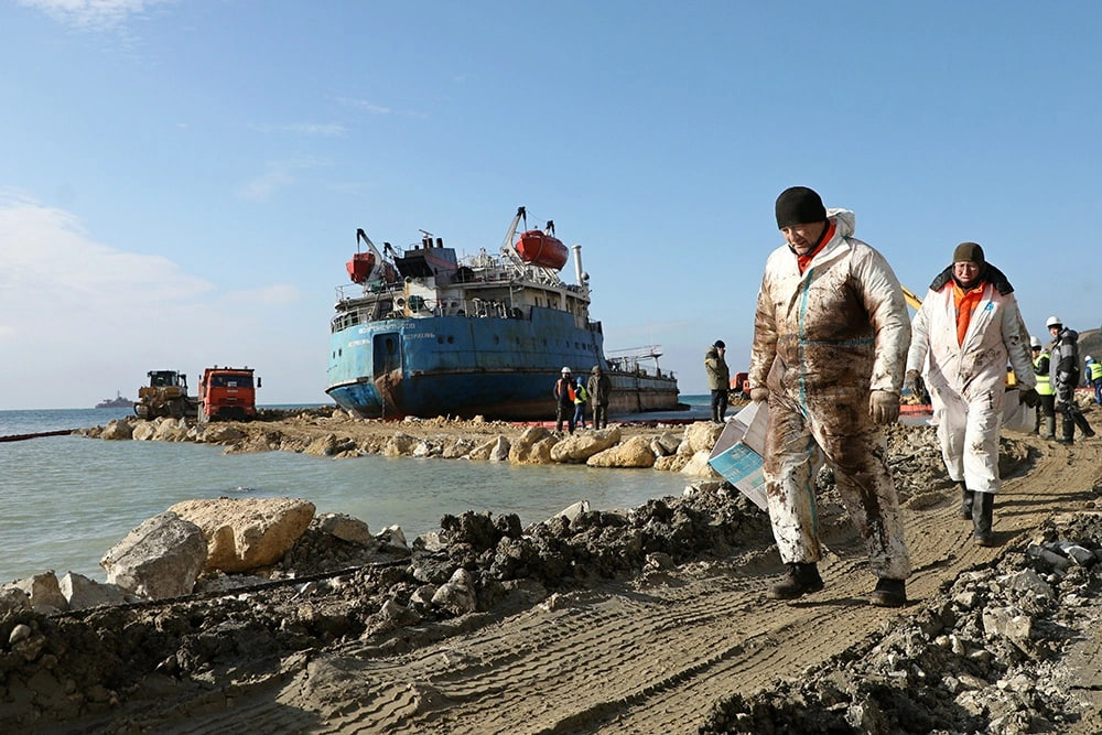 In early December, somewhat convoluted statements from the aggressor suggested that only one of the three cofferdams had allegedly been installed over the tanker wreckage. Now, however, by the end of March, same Savelyev has quite abruptly announced that there allegedly “remain 2,000 tons of fuel oil to be pumped out” of the bow section of the “Volgoneft-212”, a task to be completed, allegedly, “by the end of May.” What makes this saga intriguing is not so much the fate of the 5.8 billion rubles, including funds allocated to the Tyumen-based firm “Mostostroy-11”, that were “absorbed” under the guise of “constructing and installing cofferdams,” but rather the simple fact that, strictly speaking, no one actually witnessed the process of installing these cofferdams over the tankers or the subsequent pumping out of the fuel oil this past winter amidst the stormy conditions of the Black Sea.