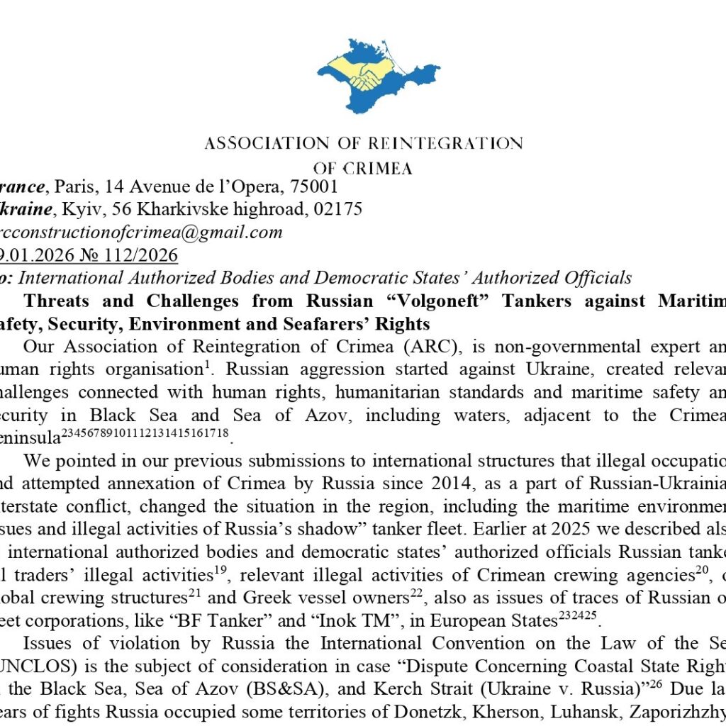 Наприкінці грудня 2025 року наша Асоціація оприлюднила матеріал, присвячений роковинам катастрофи російських танкерів “Волгонєфть” біля Керченської протоки, в якому викривалися діяння та недбалість окупантів щодо “усунення” екологічних наслідків забруднення моря тисячами тонн мазуту.